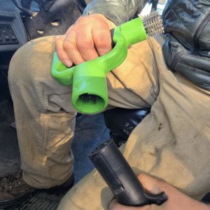 The 7-Way BrushAll® Trailer Connector Cleaner completely removes corrosion from tractor trailer cables and socket connections with one simple push-and-pull action. The brushes are arranged to perfectly line up with connector pins for precision cleaning. The innovative, patent-pending design also includes an oversized, integrated, ergonomic handle made from solid core ABS plastic with a rubber overlay double grip that is built to last. This allows the user to fully insert cable ends into the brush housing and remove all pin corrosion with one action.