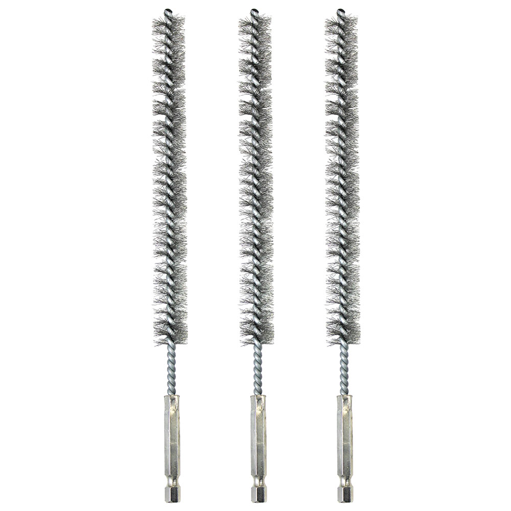- Replacement 10mm, 15mm and 19mm 9″ stainless steel bore brushes (#8083)