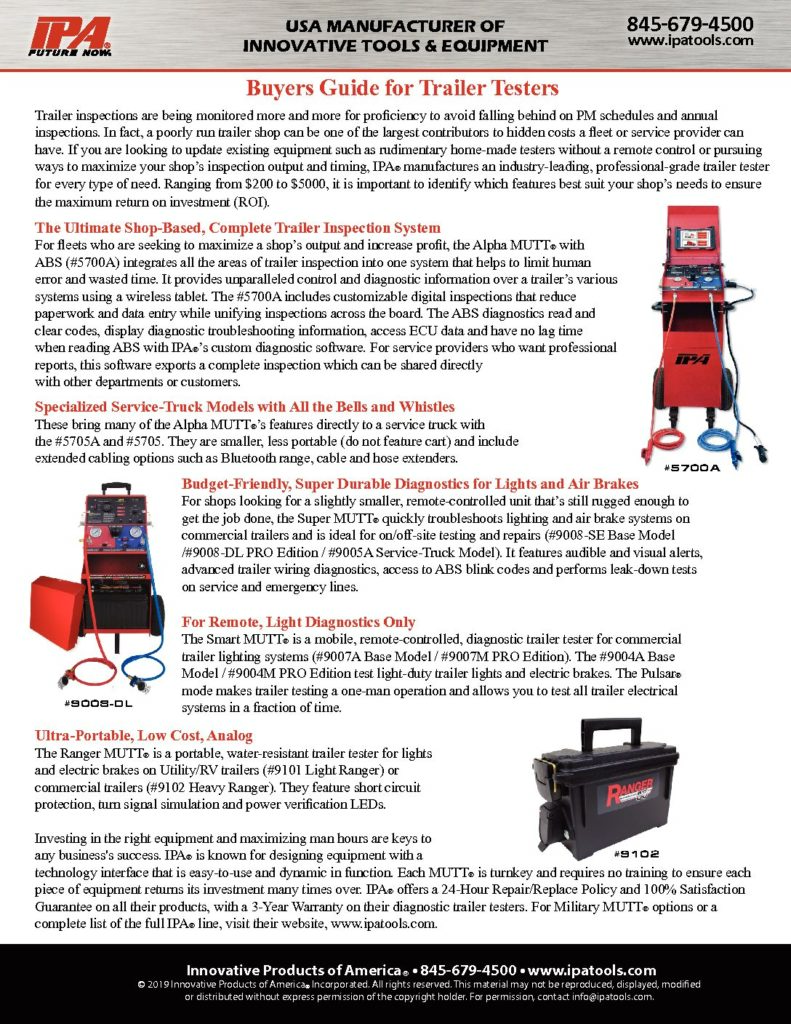 Quickly Troubleshoot Lighting, Air Brake and ABS Systems with the Industry’s Leading Mobile Universal Trailer Tester